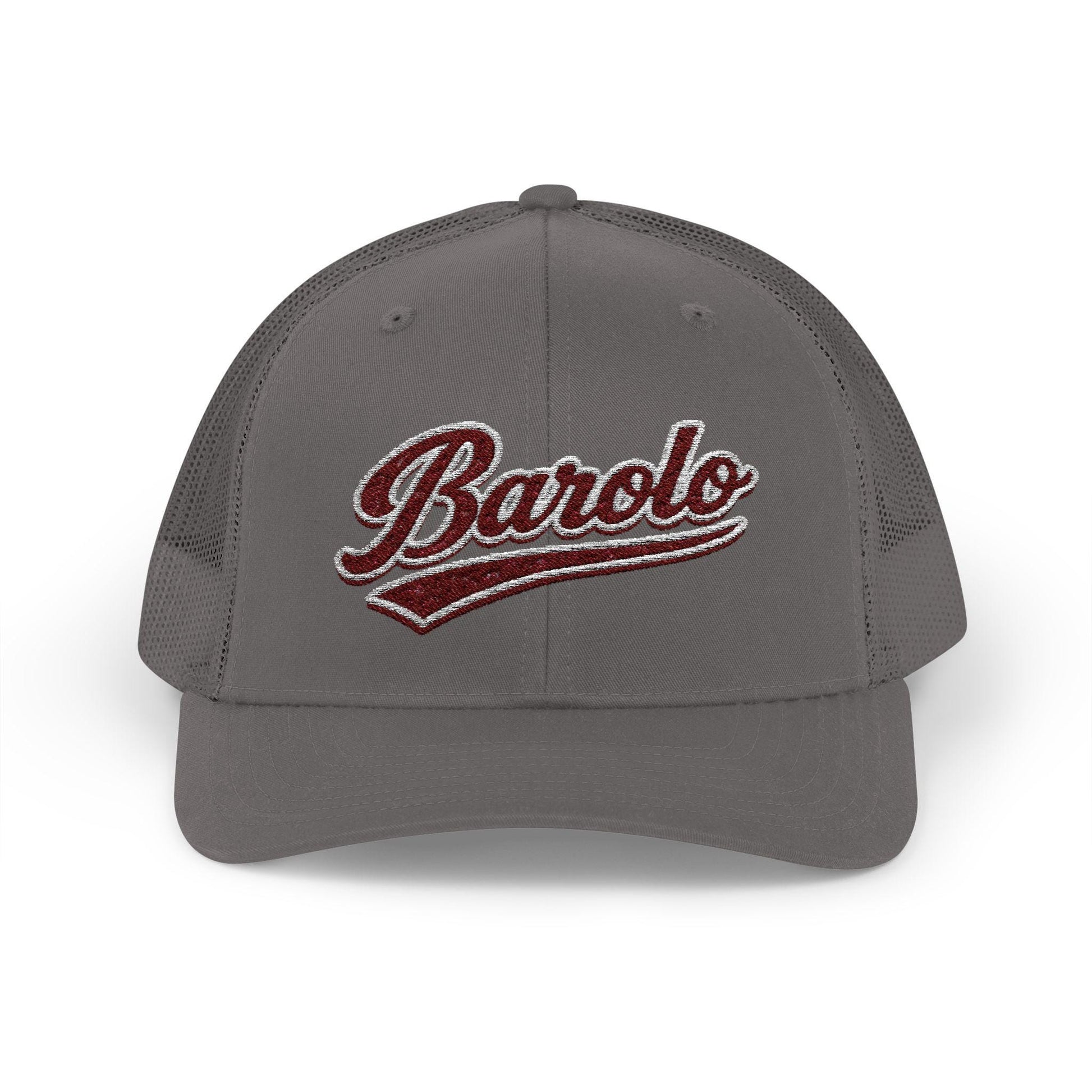 The embroidered "Barolo" script on the front adds a handcrafted touch, while the breathable polyester mesh and cotton sweatband keep you cool during long afternoons outdoors. Adjustable snap closure means it grows with your plans: vineyard strolls, weekend drives, or an easy evening at a local tasting.