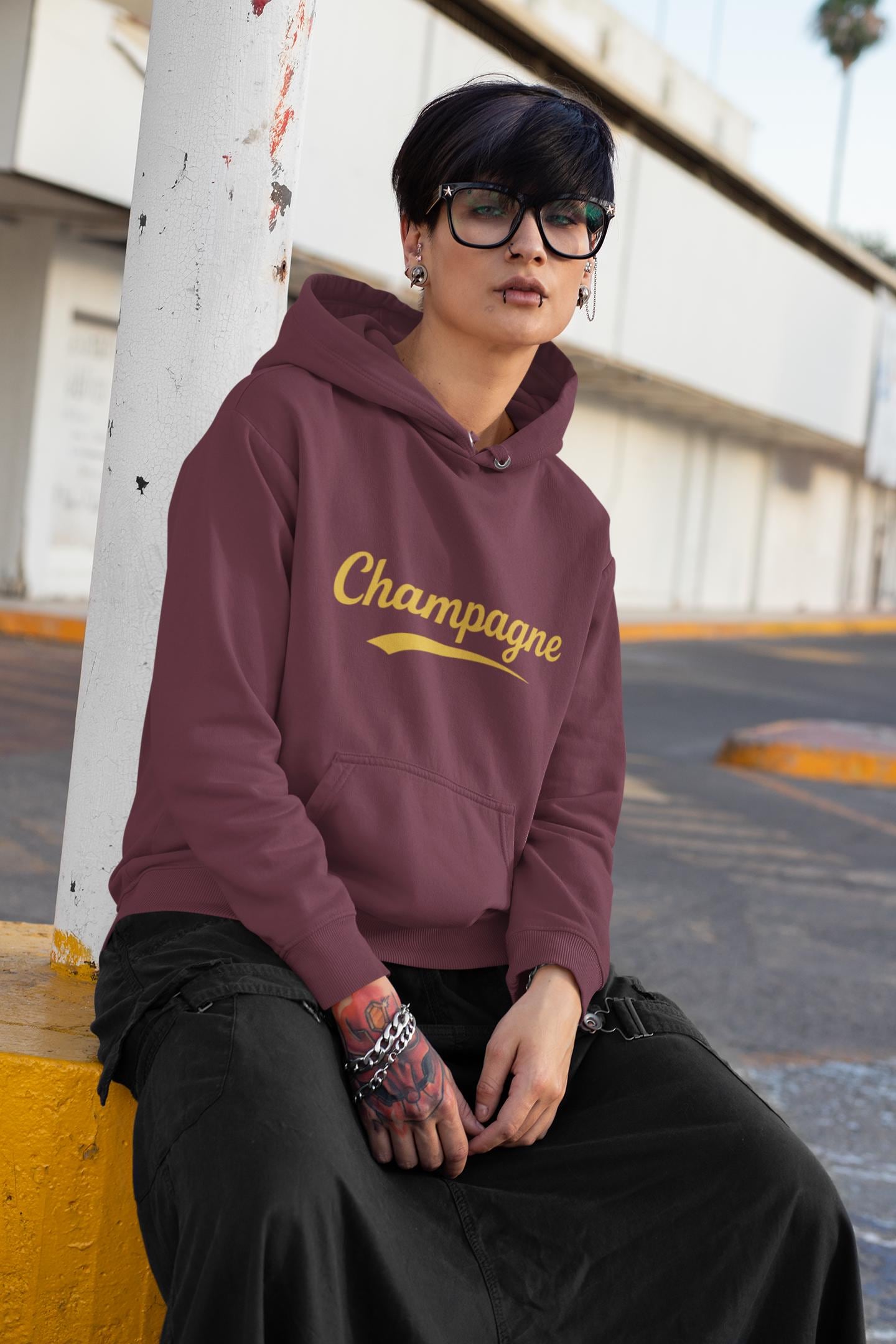 Slip into a soft, roomy hoodie that reads like a quiet celebration. The clean white fabric and elegant "Champagne" script create a low-key, stylish statement — like catching up with a friend over late-night bubbles or lounging at a weekend brunch that stretches into golden-hour conversation. It feels warm against your skin, drapes easily, and carries an effortless, slightly nostalgic charm. Wear it on slow mornings, travel days, or when you want something familiar and refined to lean on. The subtle script and minimalist design keep the mood relaxed and a touch elevated.