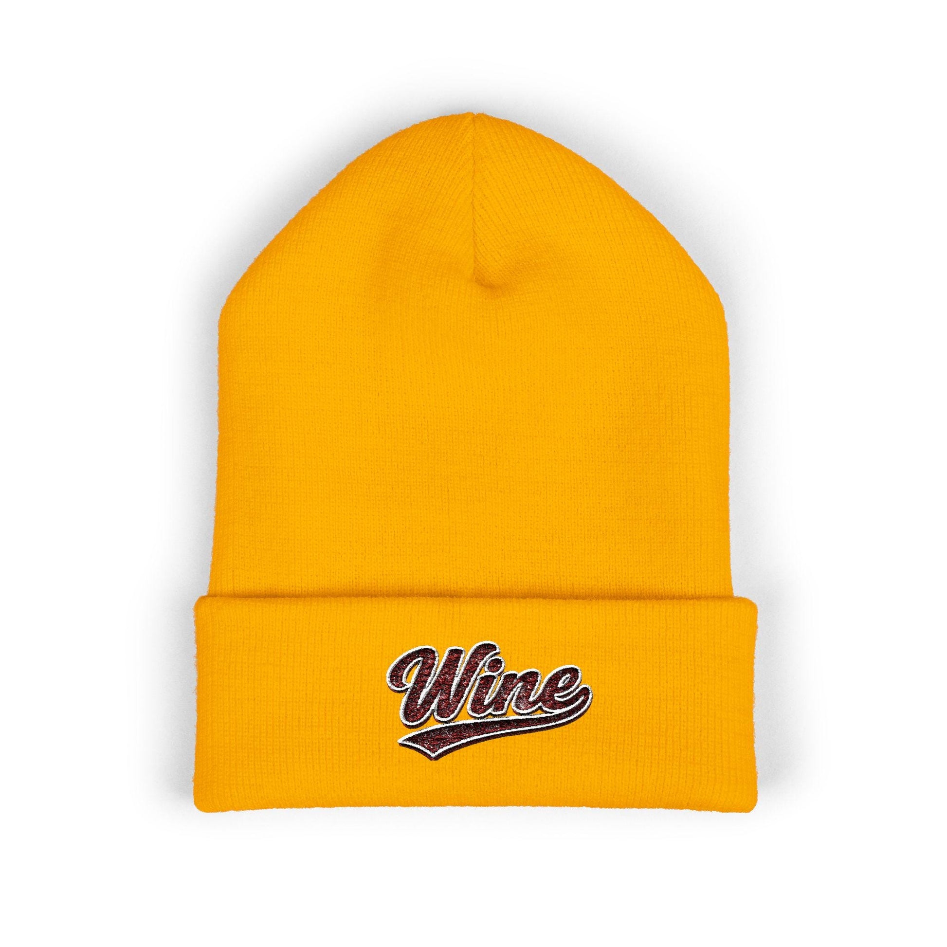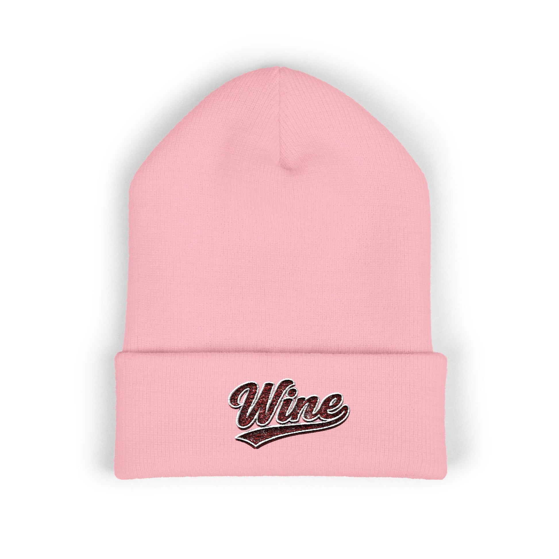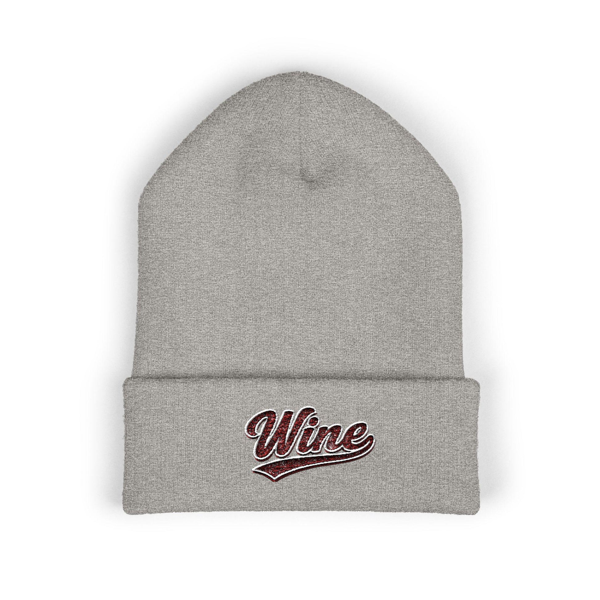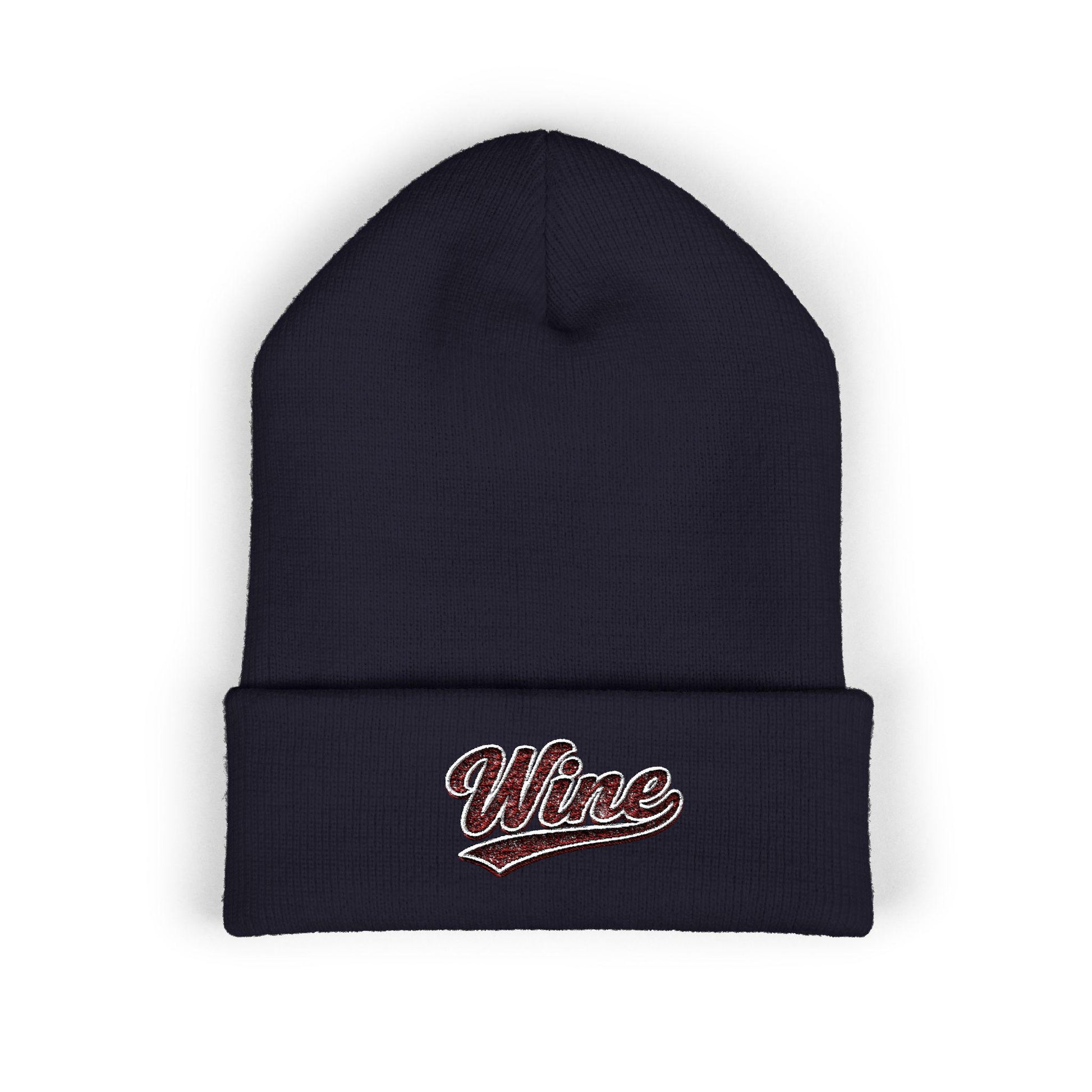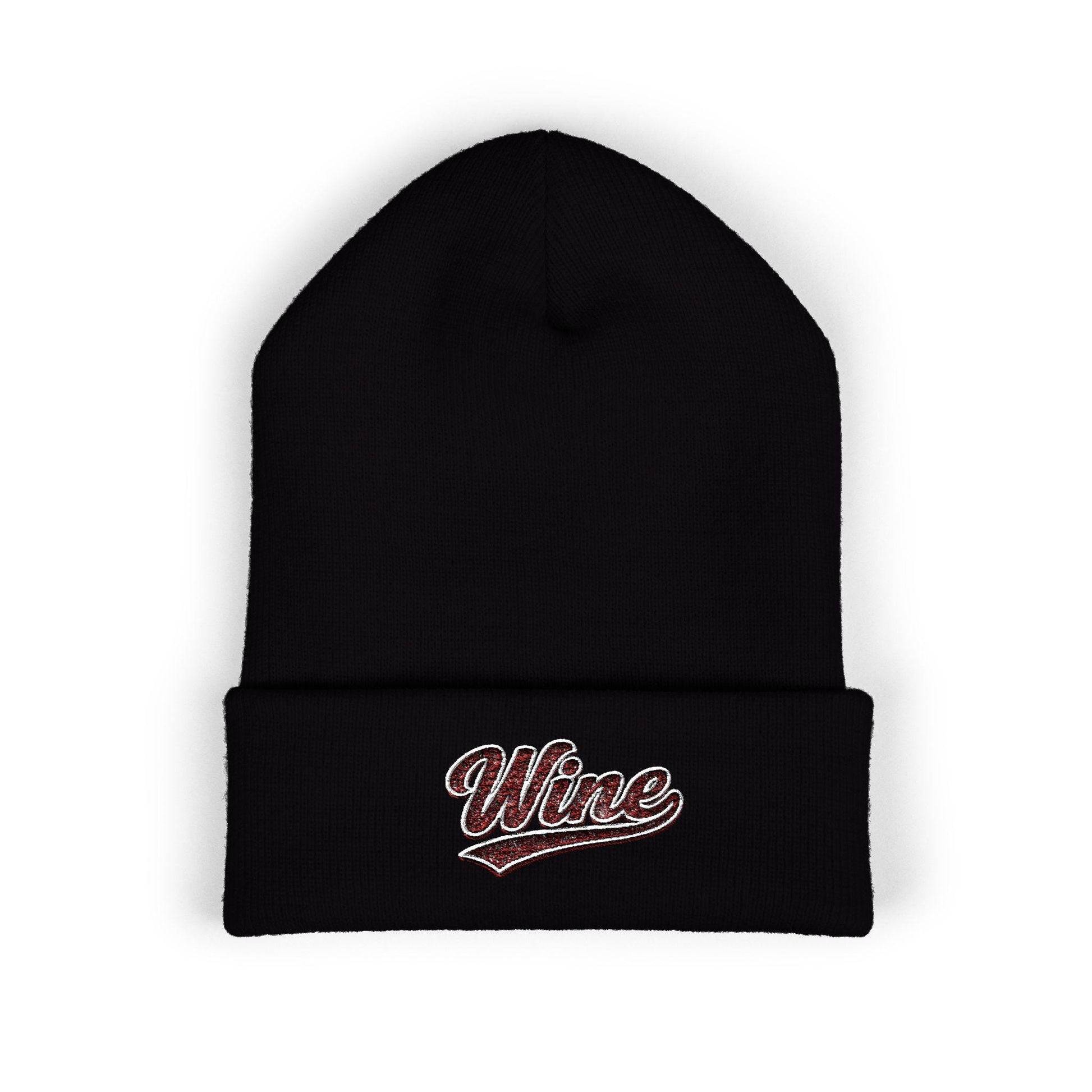 Embroidered Wine Beanie, Cuffed Knit Hat, Gift for Wine Lovers