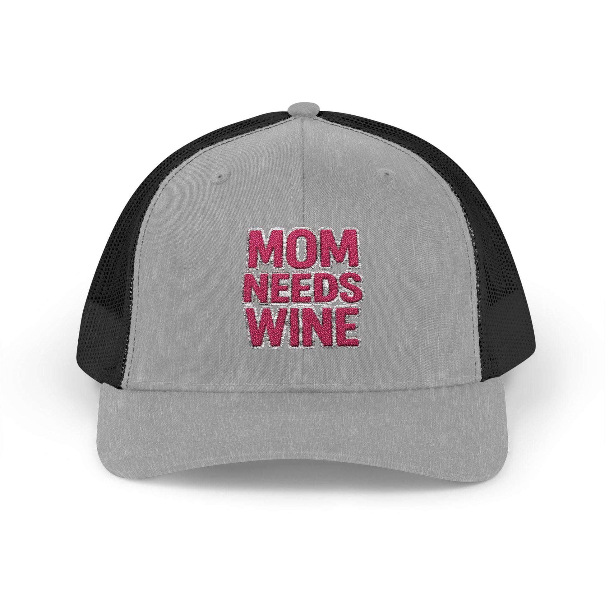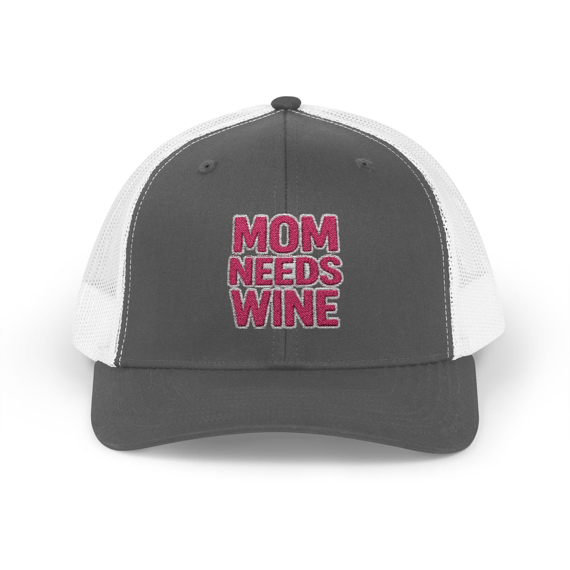 Mom Needs Wine Embroidered Trucker Hat, Funny Gift for Her