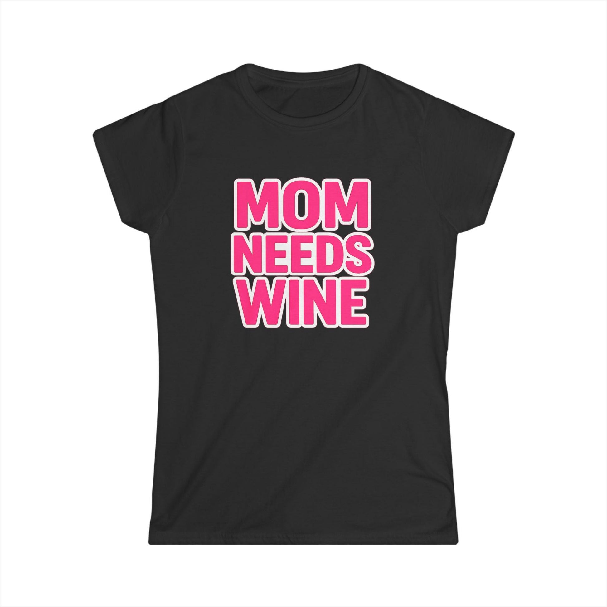 Mom Needs Wine Tee, Bold Pink Text Mothers Day Shirt