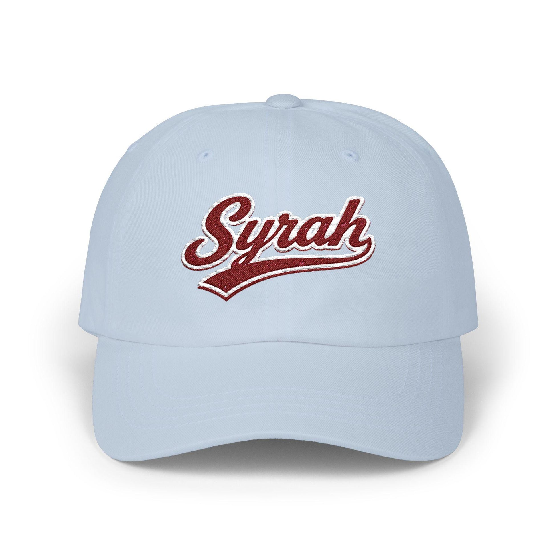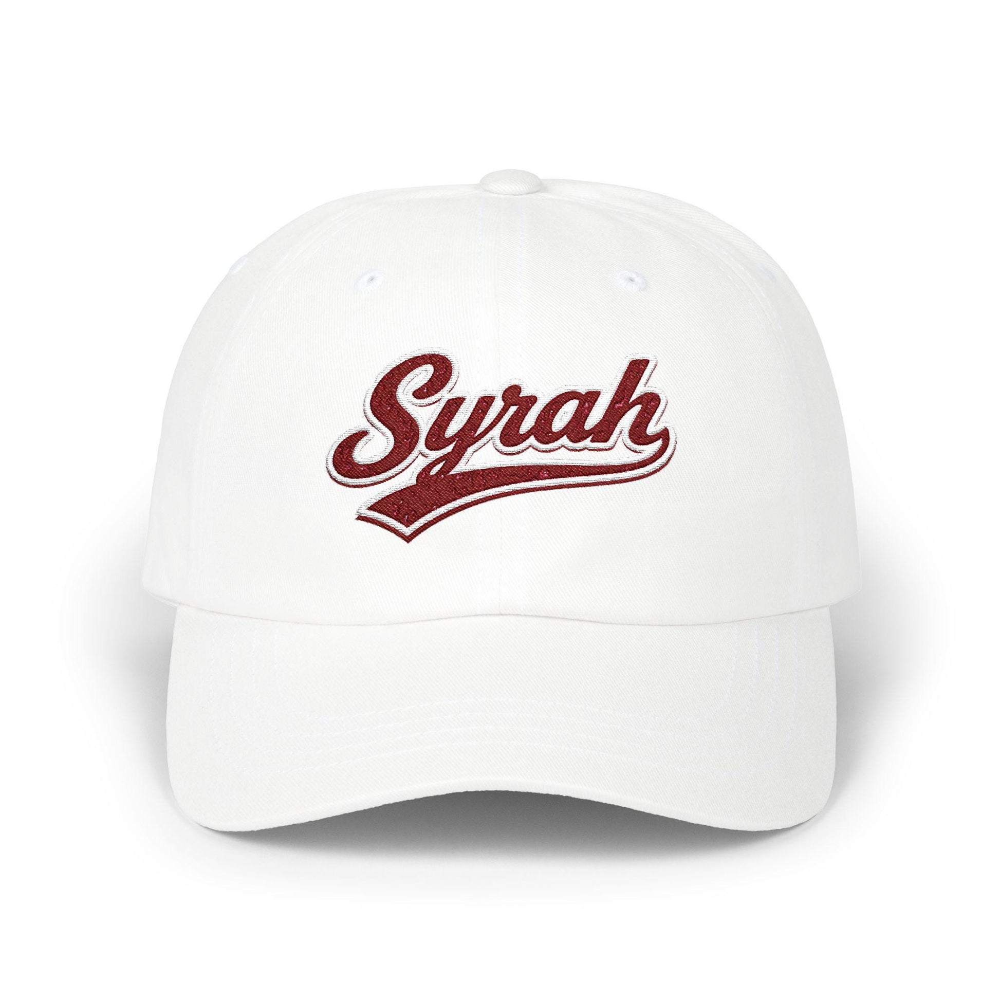 Sunlit afternoons and easy conversations—this classic dad cap brings relaxed confidence to every outing. Soft, unstructured cotton and a gently precurved visor drape comfortably over your head, while the vintage-script ‘Syrah’ embroidery adds a tasteful nod to wine-country charm. The adjustable hideaway strap with antique brass hardware lets you dial in a snug fit, and subtle details like the matching underbill and sewn-in label keep the look thoughtfully finished. Wear it to vineyard walks, weekend markets, or backyard barbecues—this cap sits low, breathes well, and carries a quiet, cultivated vibe.
