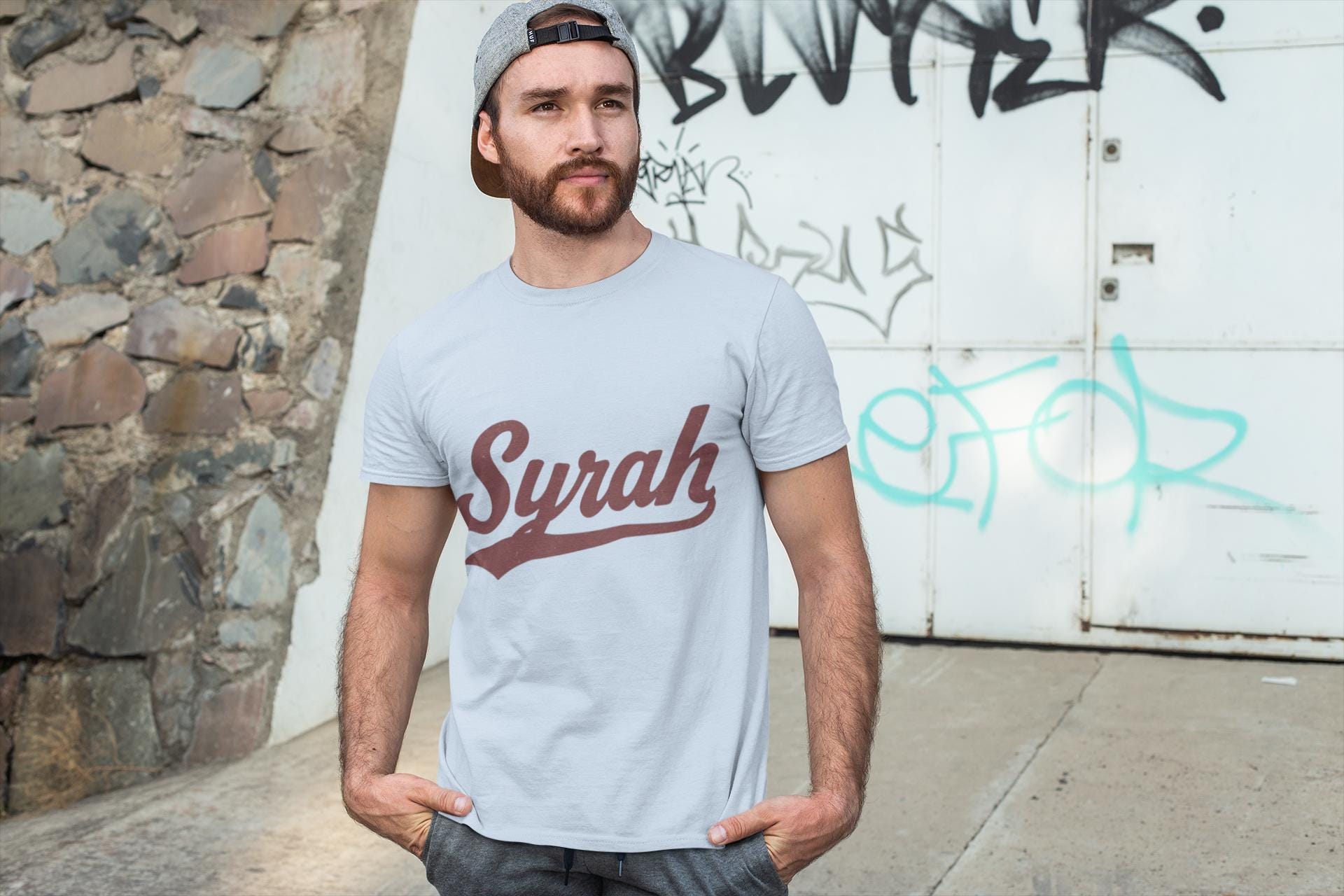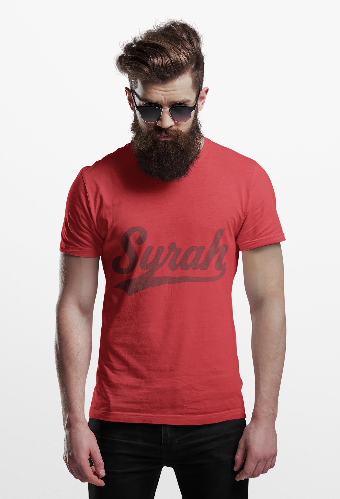 Lightweight, breathable, and built to last — this classic tee celebrates wine lovers with a vintage-inspired "Syrah" script across the chest. The smooth, strong fabric and ribbed crew neck keep the shape through repeated wears and washes, while the tubular knit body and shoulder tape deliver a clean silhouette. It sits comfortably for relaxed afternoons at the tasting room, slow dinners, or vineyard strolls. Wear it with rolled sleeves, your favorite denim, and a glass in hand to channel relaxed, vineyard-side vibes.